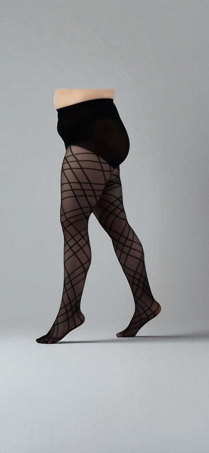 Collant transparent 30 deniers à motif croisé et pointe renforcée, sans l'empiècement arrière disgracieux que l'on retrouve généralement sur les collants grandes tailles. 92 % polyamide, 8 % élasthanne et gousset en coton
